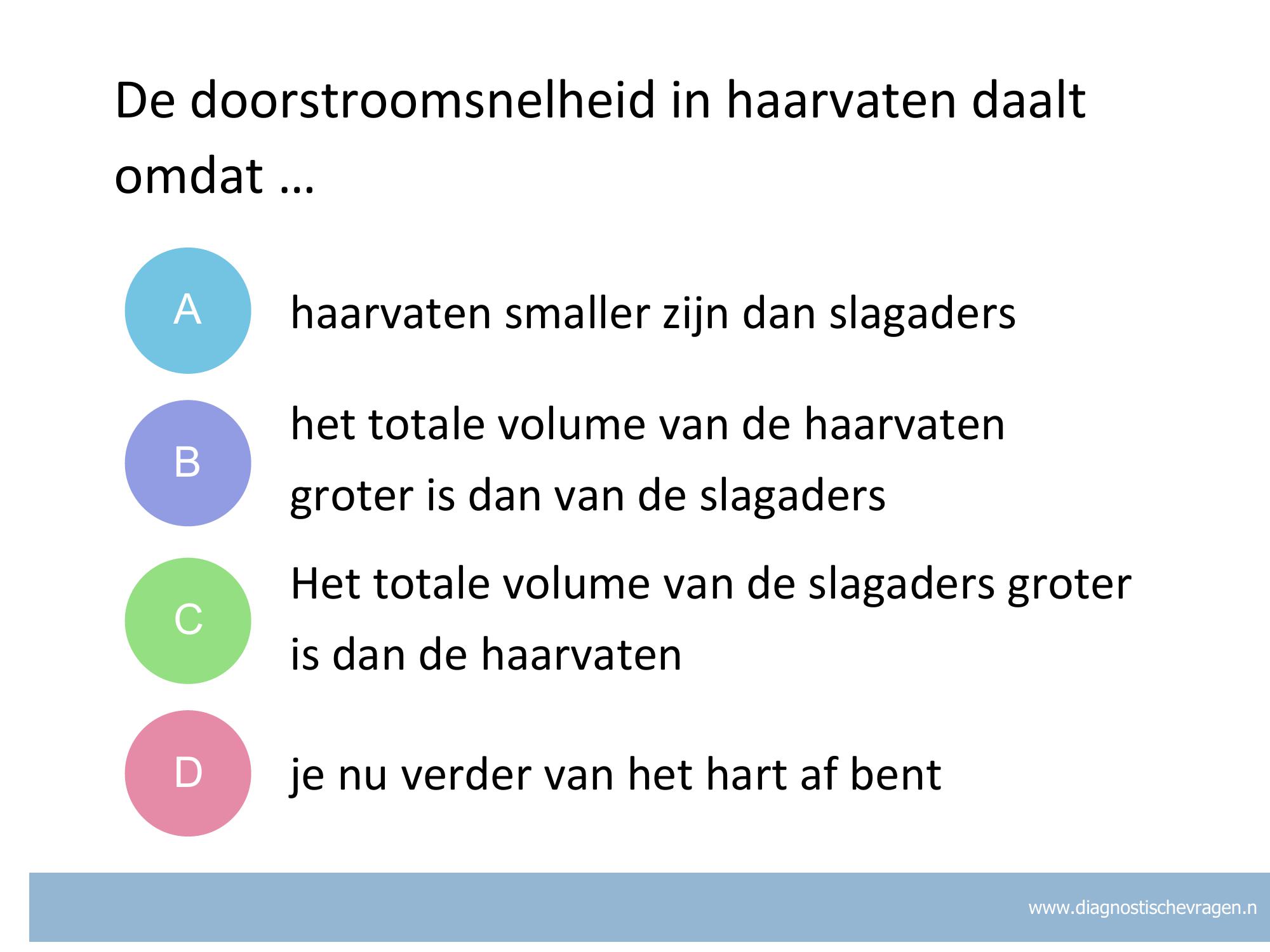 C Leerlingen denken dat de gezamenlijke inhoud van slagaders groter is dan van haarvaten
